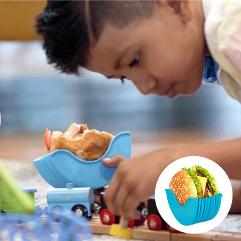 - אין יותר המבורגר מבולגן: המחזיק מתרחב להכיל פטיז נוספים ומילויים שונים, עם צדדים אלסטיים השומרים על ההמבורגר והמלית במקום.